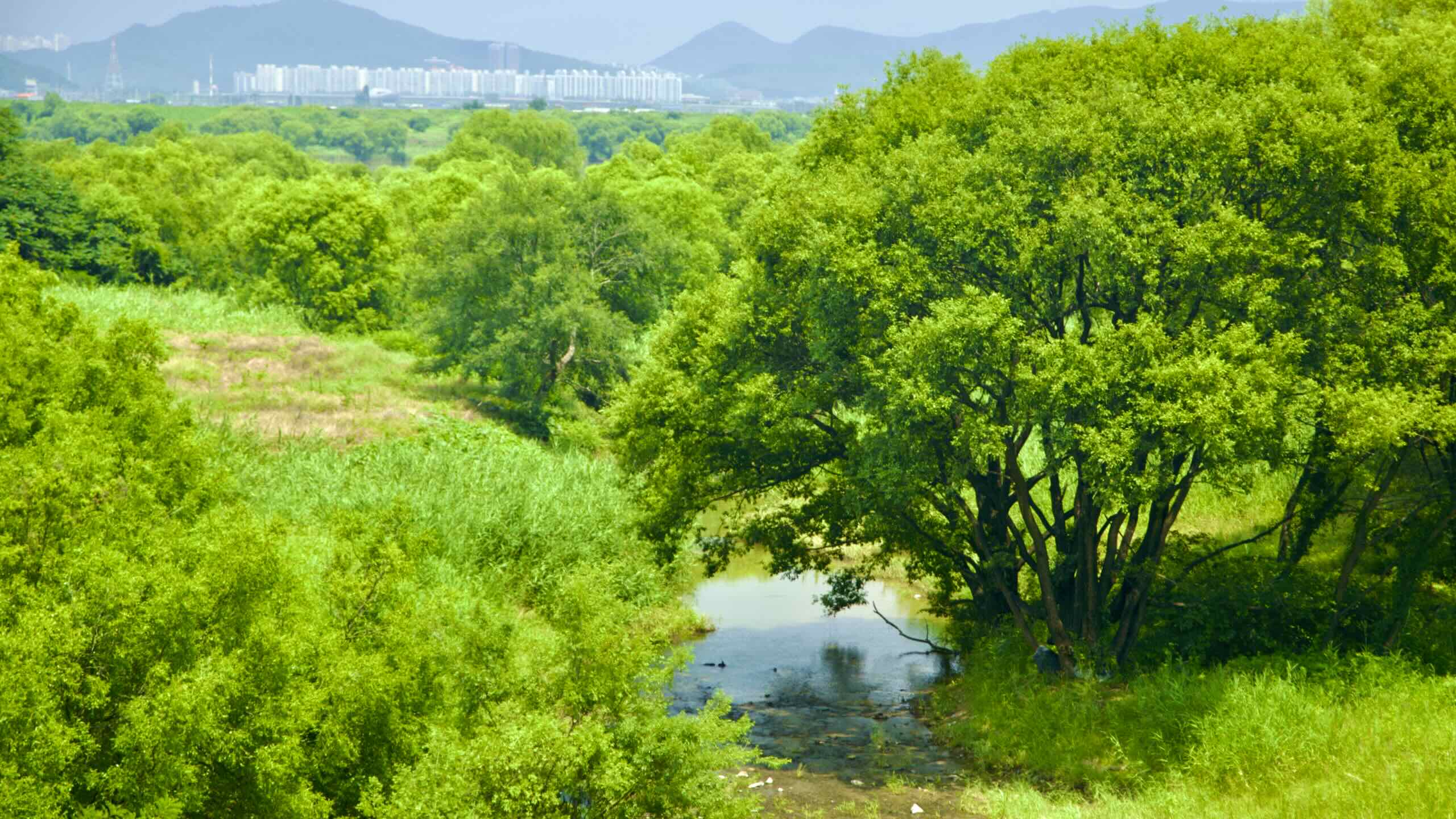 나무가 늘어선 들쭉날쭉한 곡선을 따라 바람을 피우고 전망이 있는 제방에 올라보세요(도로보기)의대구국가산업단지 (지도). 삼성과 LG재벌 자연의 손아귀에서 이 거대한 부지를 빼앗아 화학, 자동차, 전자 공장을 세웠습니다.