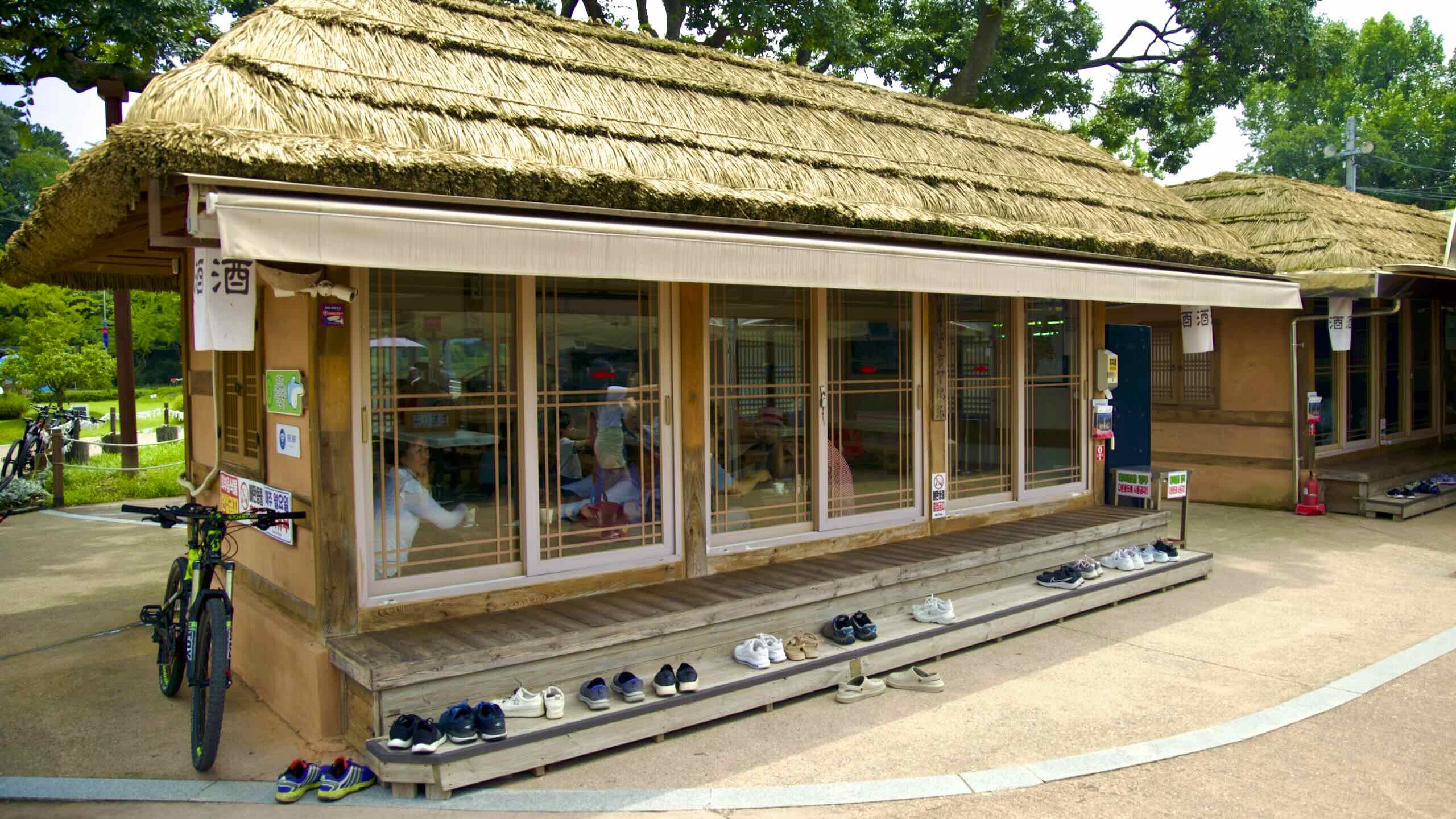 - 사문진 주막촌2013년에 복원된 사문진 주막촌은 소고기국밥, 메밀전, 막걸리 등을 판매하며, 운영 시간은 오전 11시 30분부터 오후 7시까지입니다. 세 개의 분리된 한옥 식사 공간이 500년 된 건물 아래에 자리잡고 있습니다 중국 팽나무.