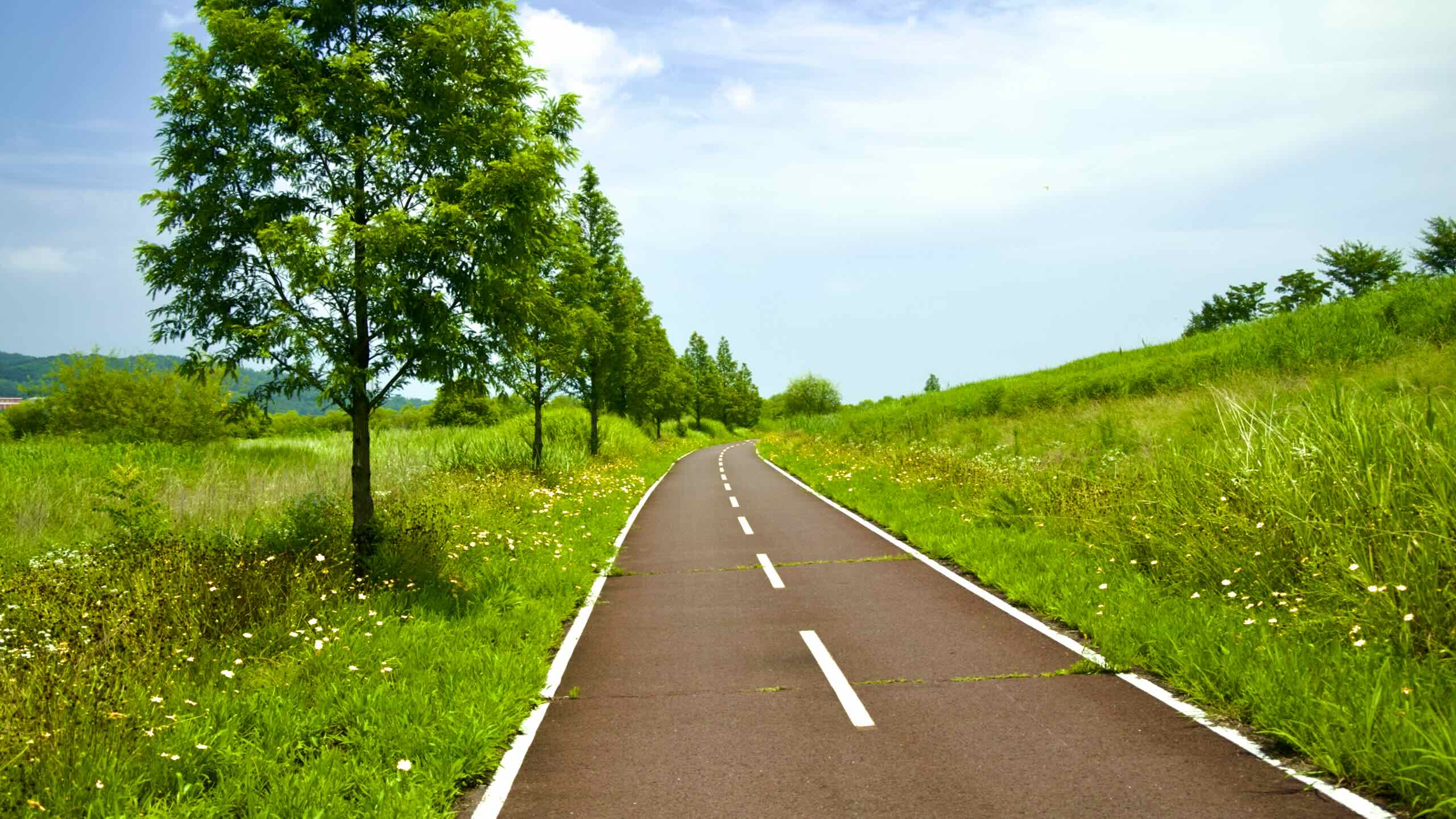 도동서원에서 자전거 도로는 굽이를 돌며 평탄해지고 곡선을 그립니다.