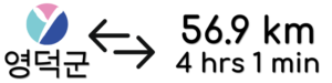 당신과 당신의 자전거를 버스를 타고 동해안 자전거길 (경북)까지 가는 방법을 배워보세요.