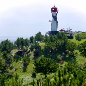 마을을 지나 북쪽으로 계속해서 언덕 꼭대기에 있는 부활한 일출 공원으로 가세요. 그런 다음 영덕에서 두 번째로 큰 항구인 축산에 도착할 때까지 일련의 가파른 등반에 도전하세요. 대나무로 덮인 산과 등대 전망대가 특징입니다.