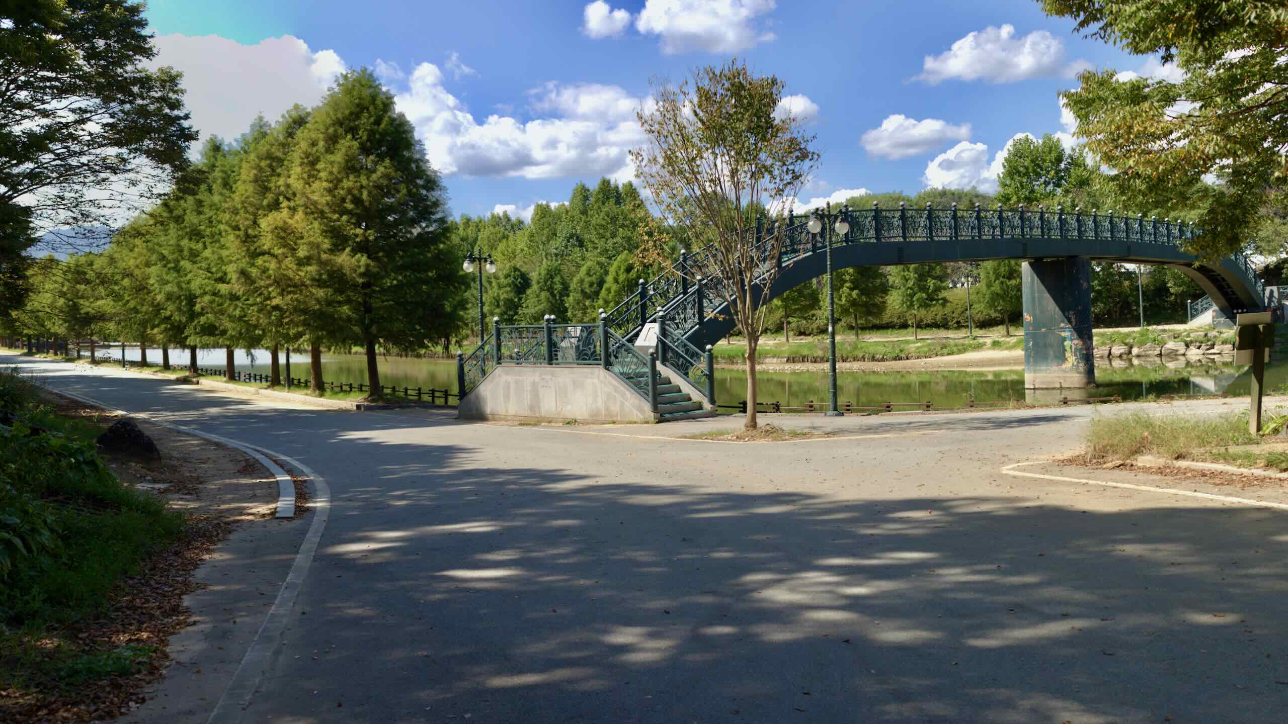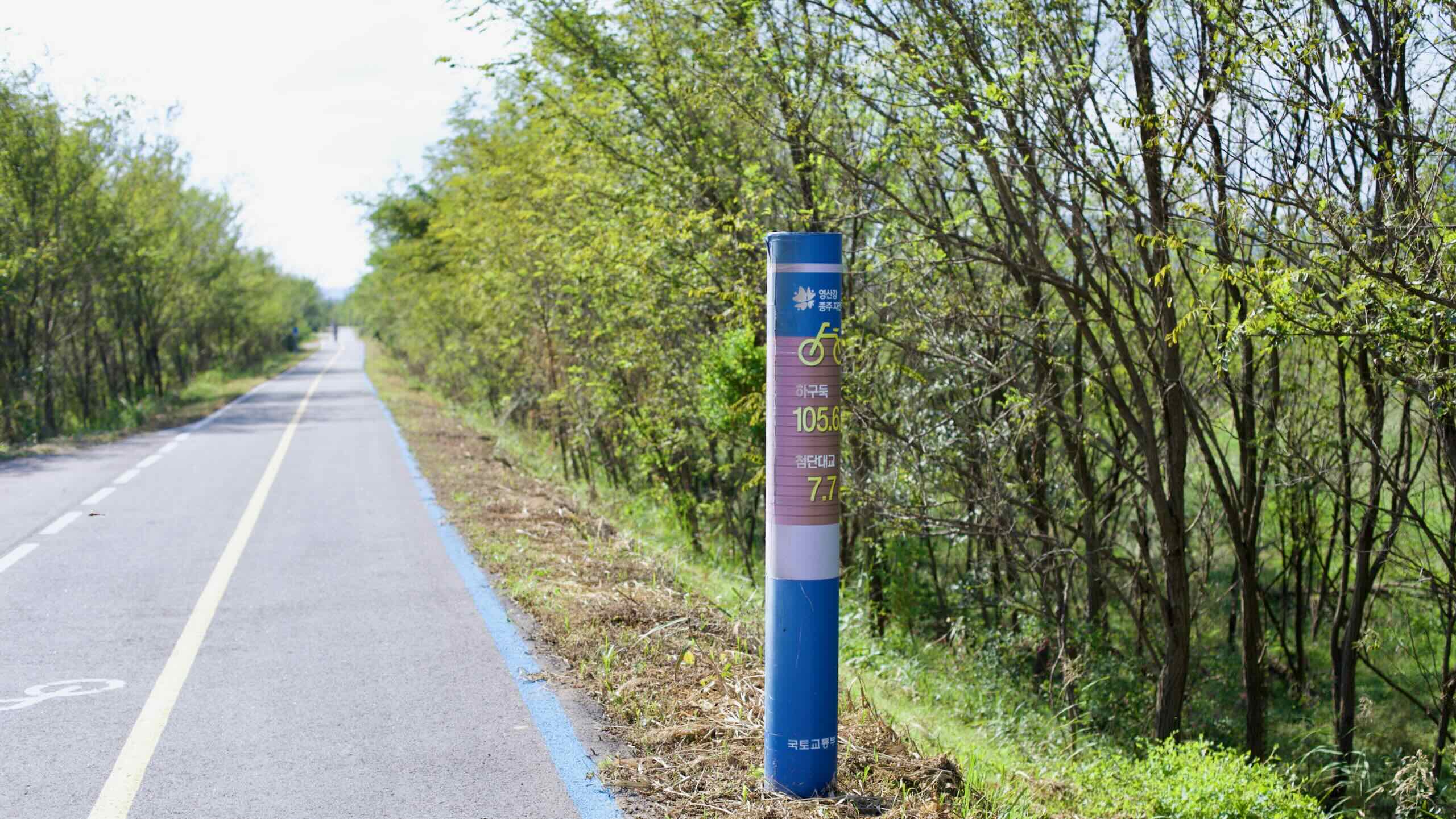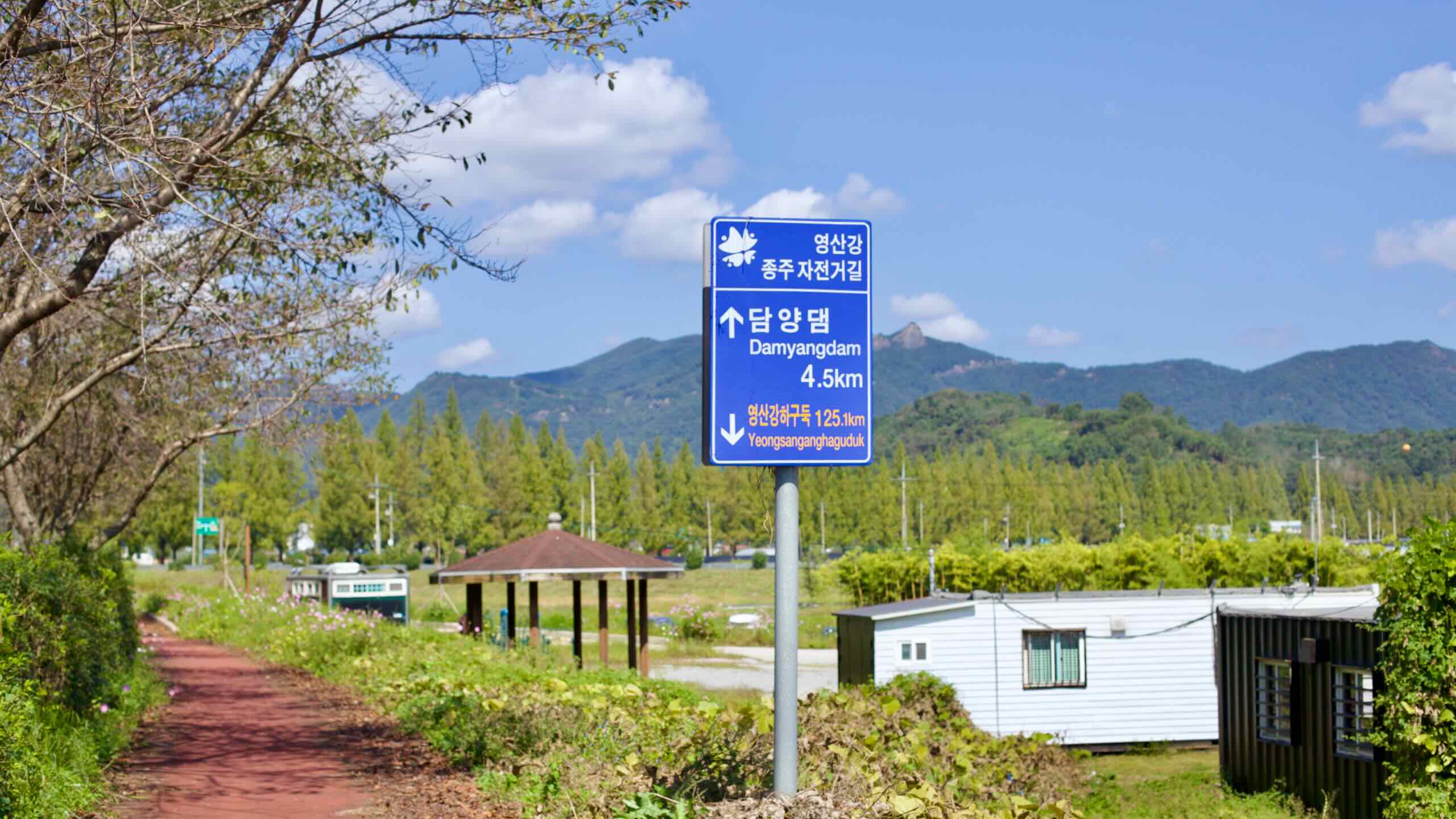 영산강 자전거길을 계속 따라가세요. 다시 담양 시내에 도착하기 전 작은 금월교(지도)에서 갈림길을 만나게 됩니다. 그 너머가 두 번째 스탬프 부스인 메타세콰이어길 인증센터 (지도, 로드뷰)입니다.
