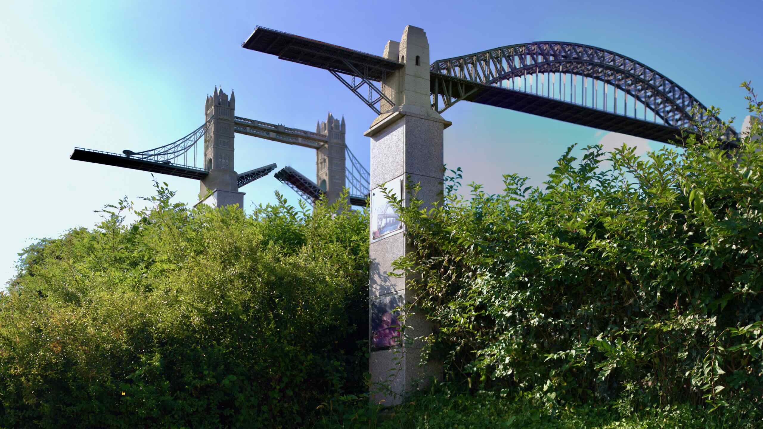 굽은 길을 돌면 북구의 지야대교 (지도)를 만납니다. 2010년에 완공된 416 m 길이의 아치형 다리는 세 개의 아치에서 내려오는 케이블이 지탱하며, 밤에는 조명이 구조물을 아름답게 비춥니다.