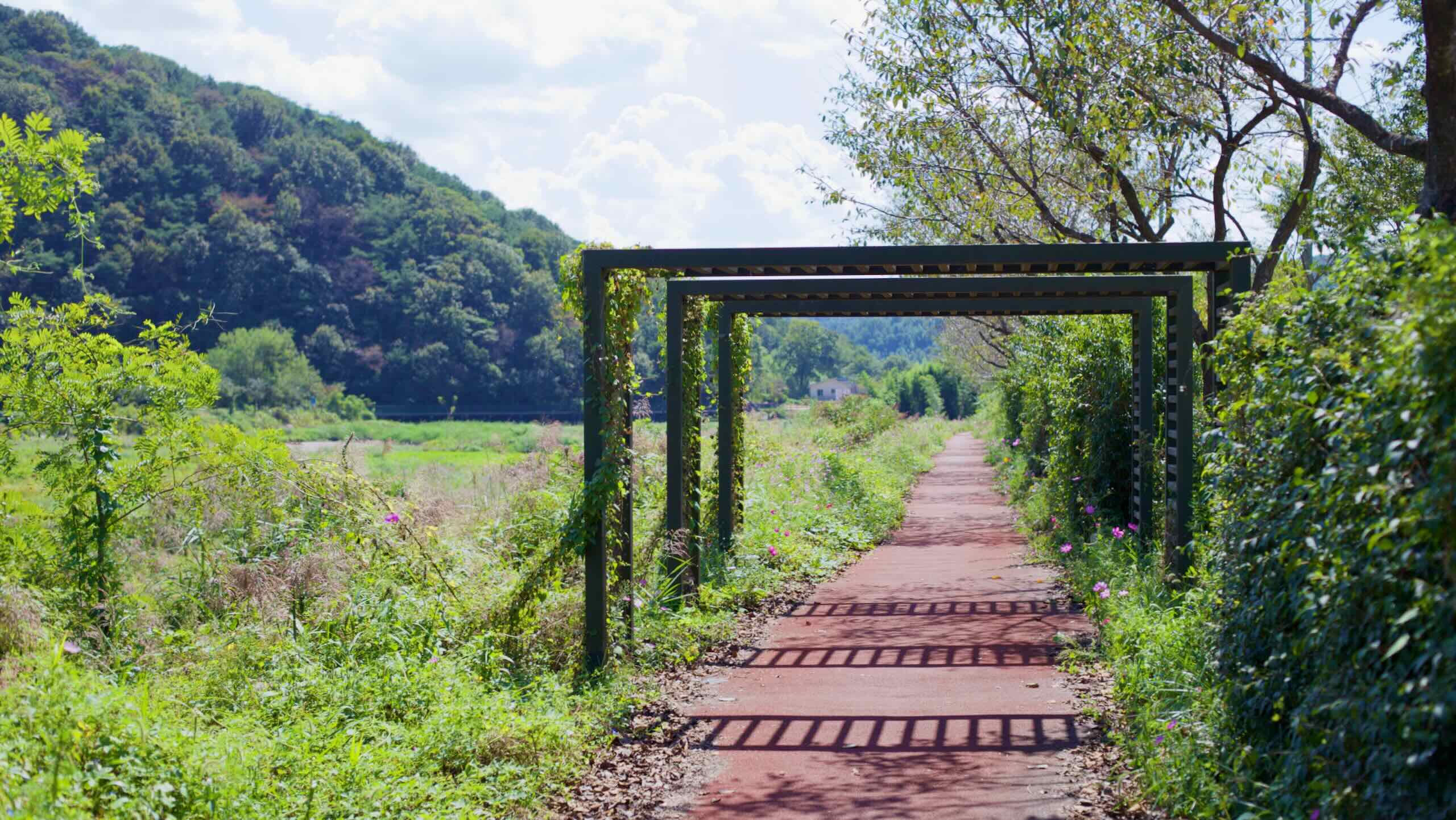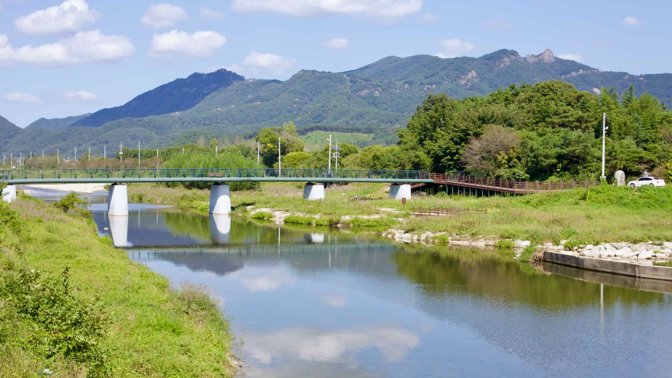광주 도심을 벗어나 도시 경계로 향하는 여정을 시작하세요. 농촌 길을 지나 마지막에는 쌀 모양의 커다란 보에서 마무리하게 됩니다.