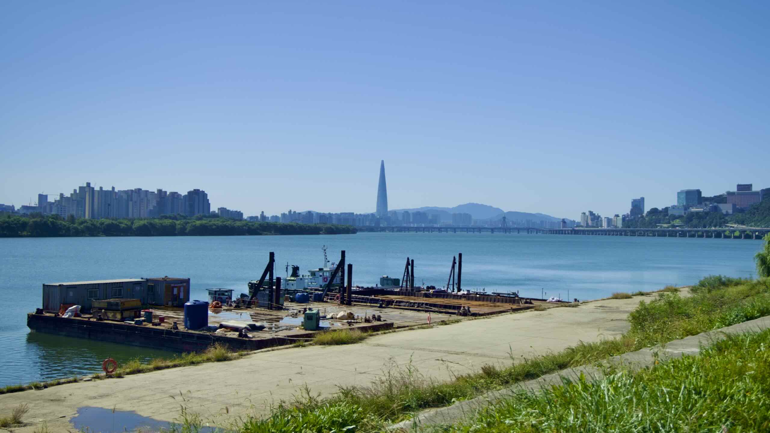 항 박물관 (한강뮤지엄; 지도) 이 카페들 사이에 거주합니다. 이 개인 시설은 커피숍, 예술 공간, 포토존의 세 가지 기능을 갖추고 있습니다. 티켓 구매 시 무료 증정컵 오브 조, 유명한 예술 작품 앞에 서서 사진을 찍어보세요.응시하다 박물관 옥상에서 바라본 한강.