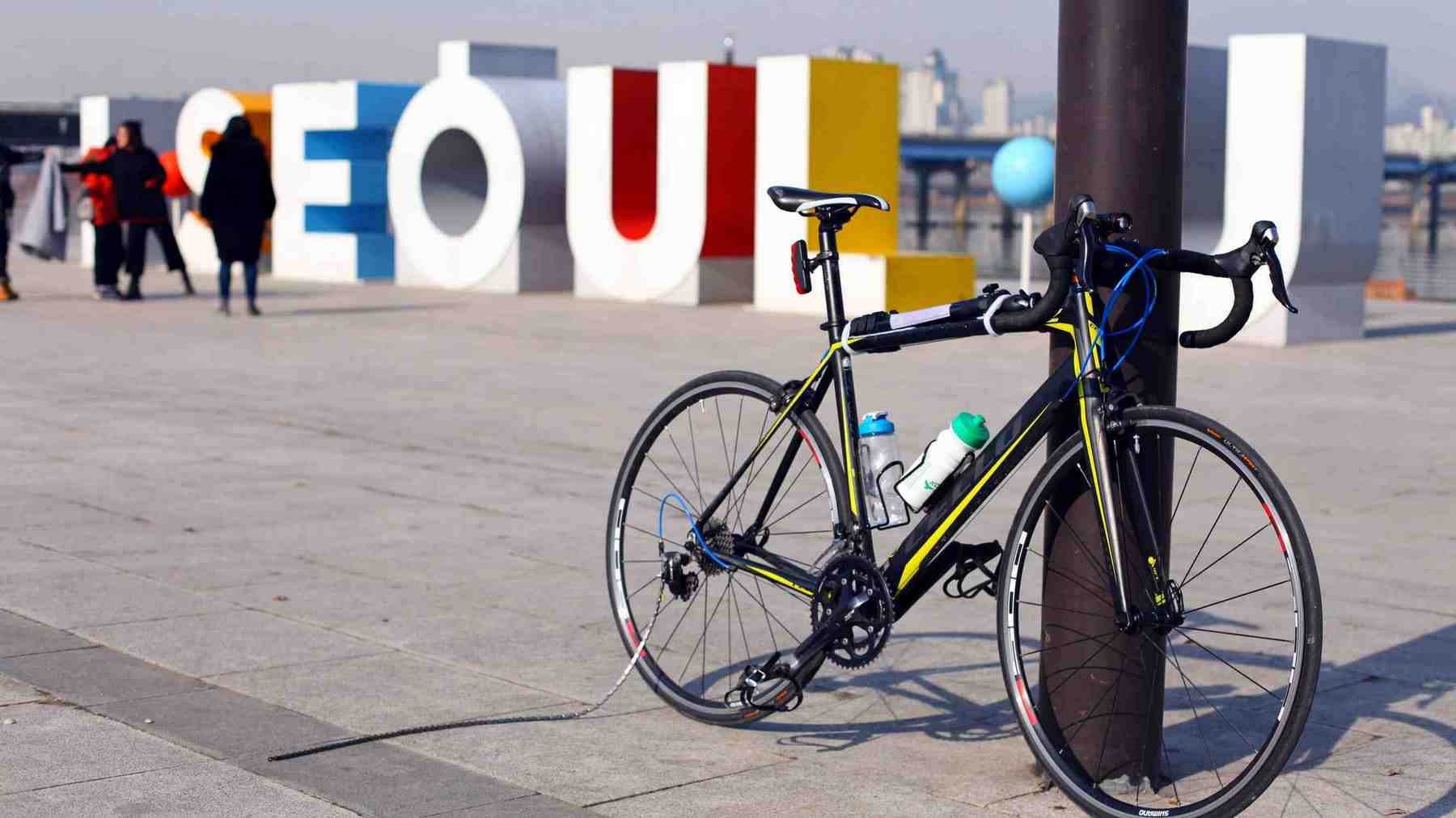 - 안장이나 손잡이를 나무, 벤치, 쓰레기통 같은 것에 걸어라. 자전거의 포크나 체인 스테이를 땅에 갈지 마세요.