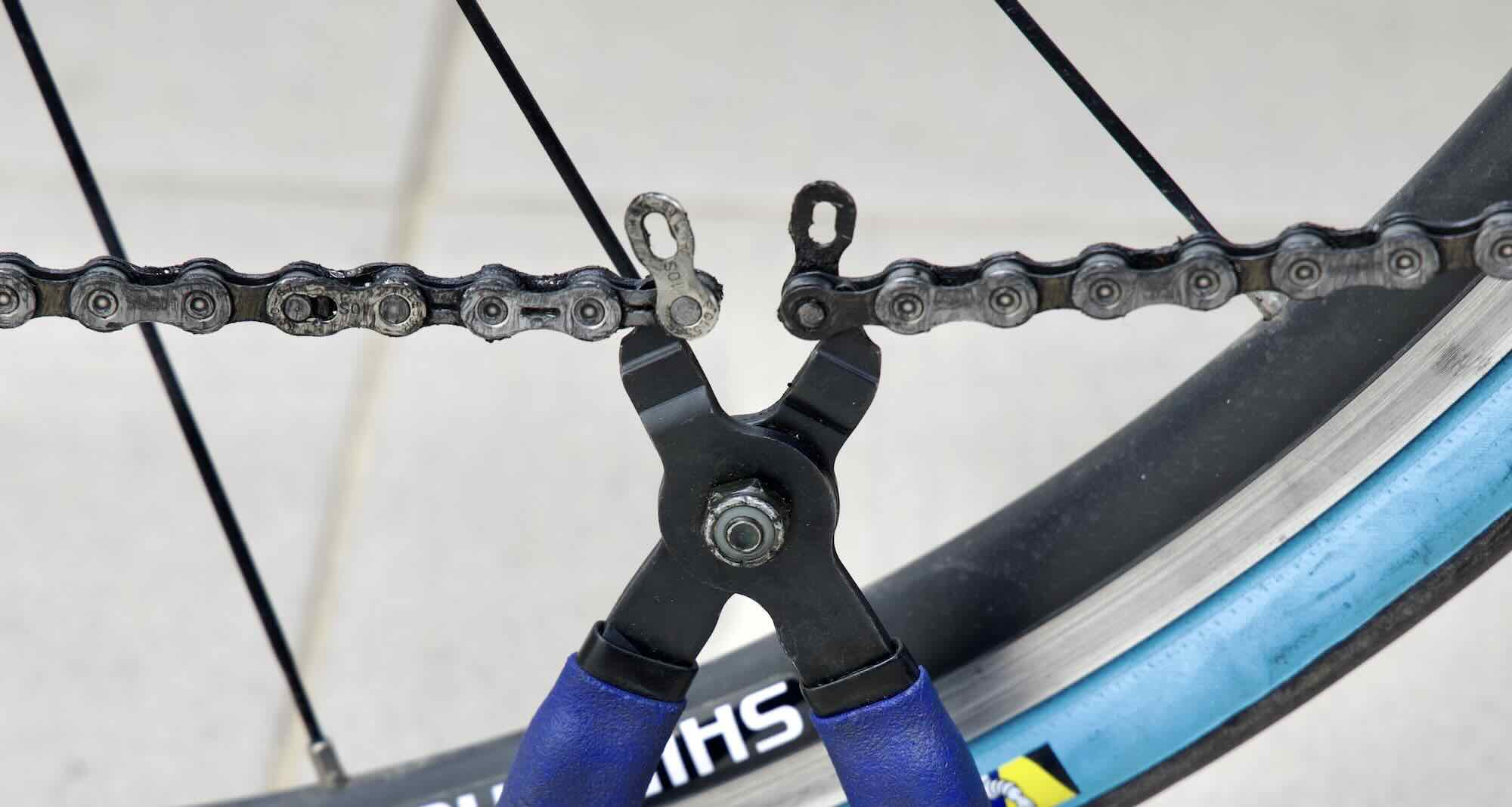- 자전거 멀티툴 체인 브레이커를 사용해서? 그것의 작은 손잡이는 많은 영향력을 제공하지 않는다. 따라서 겉보기에는 더 많은 힘을 가해야 할 것이다.