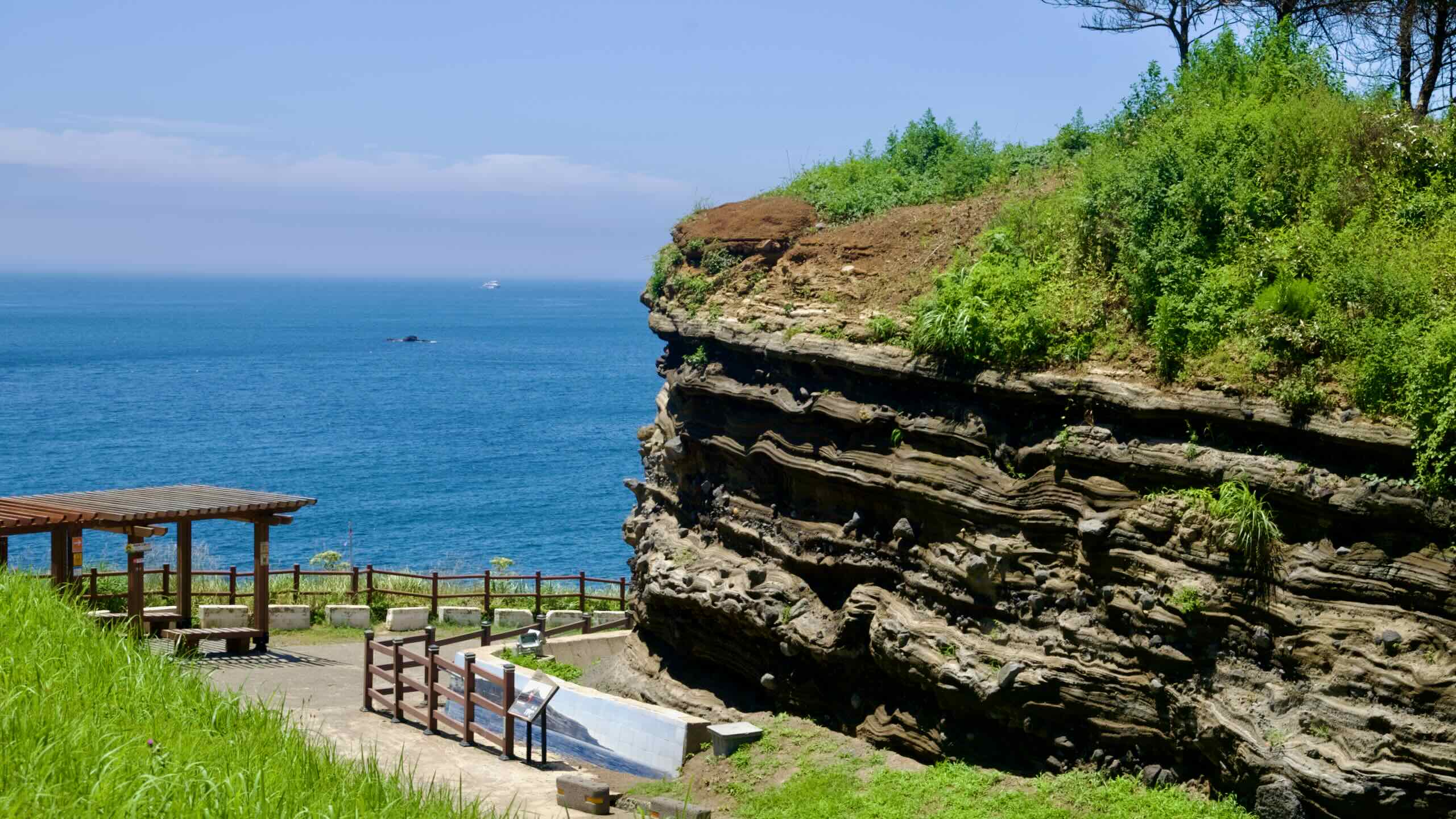 제주의 남동쪽을 돌면 위미항 위쪽으로 이어지는 길을 따라 4.8km 동안 41m를 오릅니다. 평균 경사는 0.8%로 완만하며, 도로에서는 현무암 절벽과 해식 아치를 엿볼 수 있습니다.