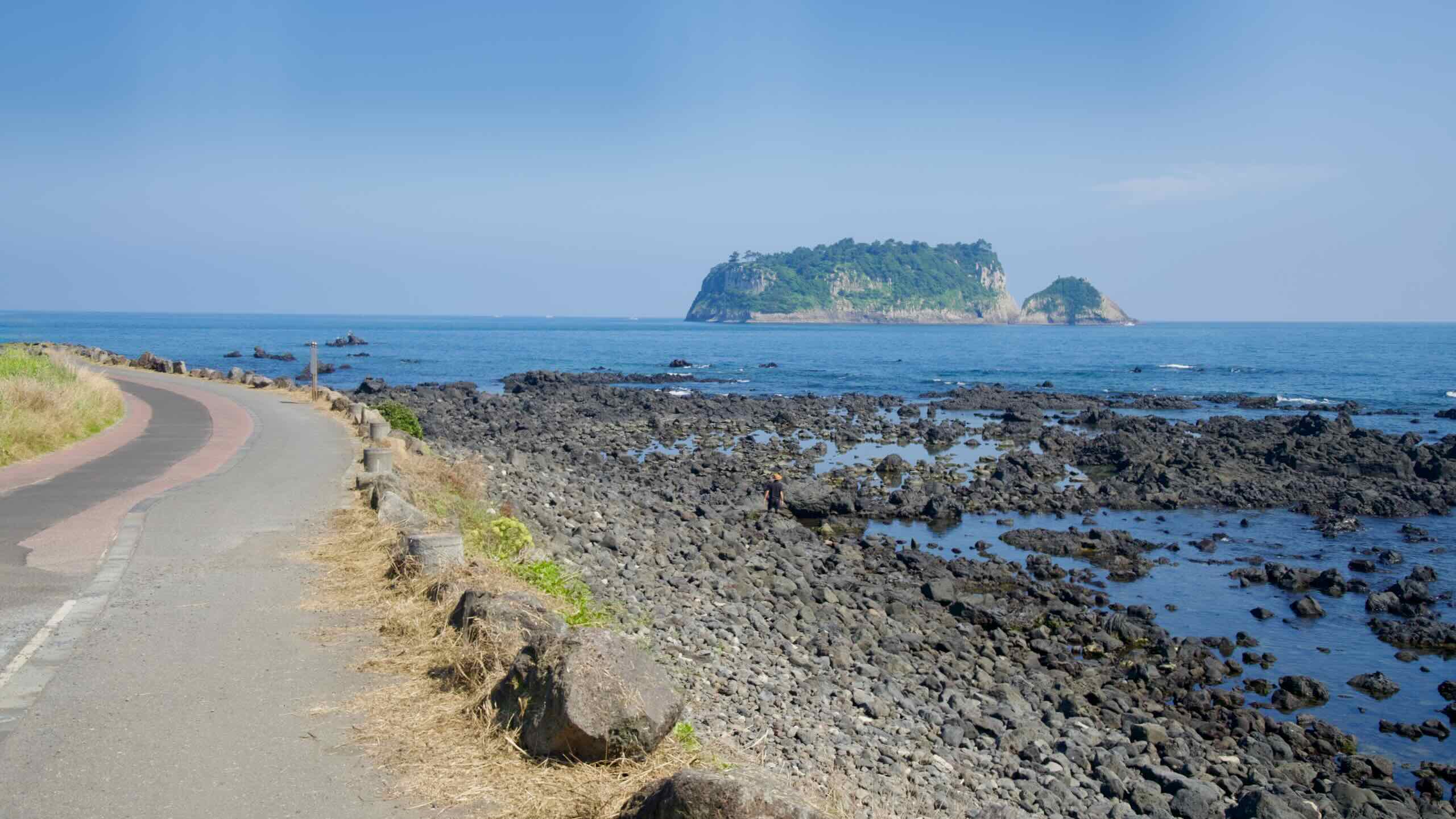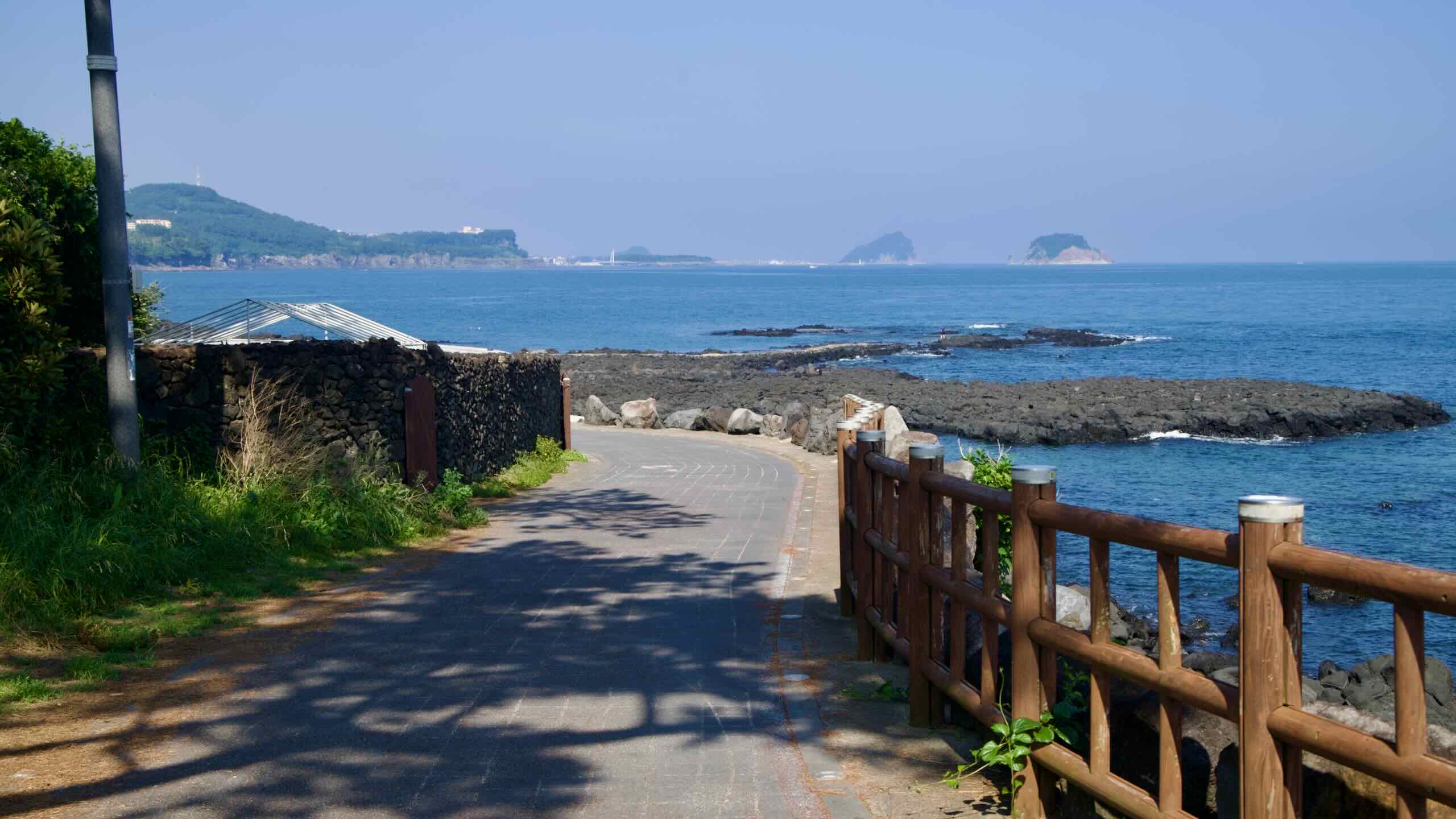 이 코스를 걷거나 자전거를 타는 방문객들은 용암의 급격한 냉각으로 형성된 인상적인 주상절리로 유명한 화산섬인 범섬의 전망을 감상할 수 있다.