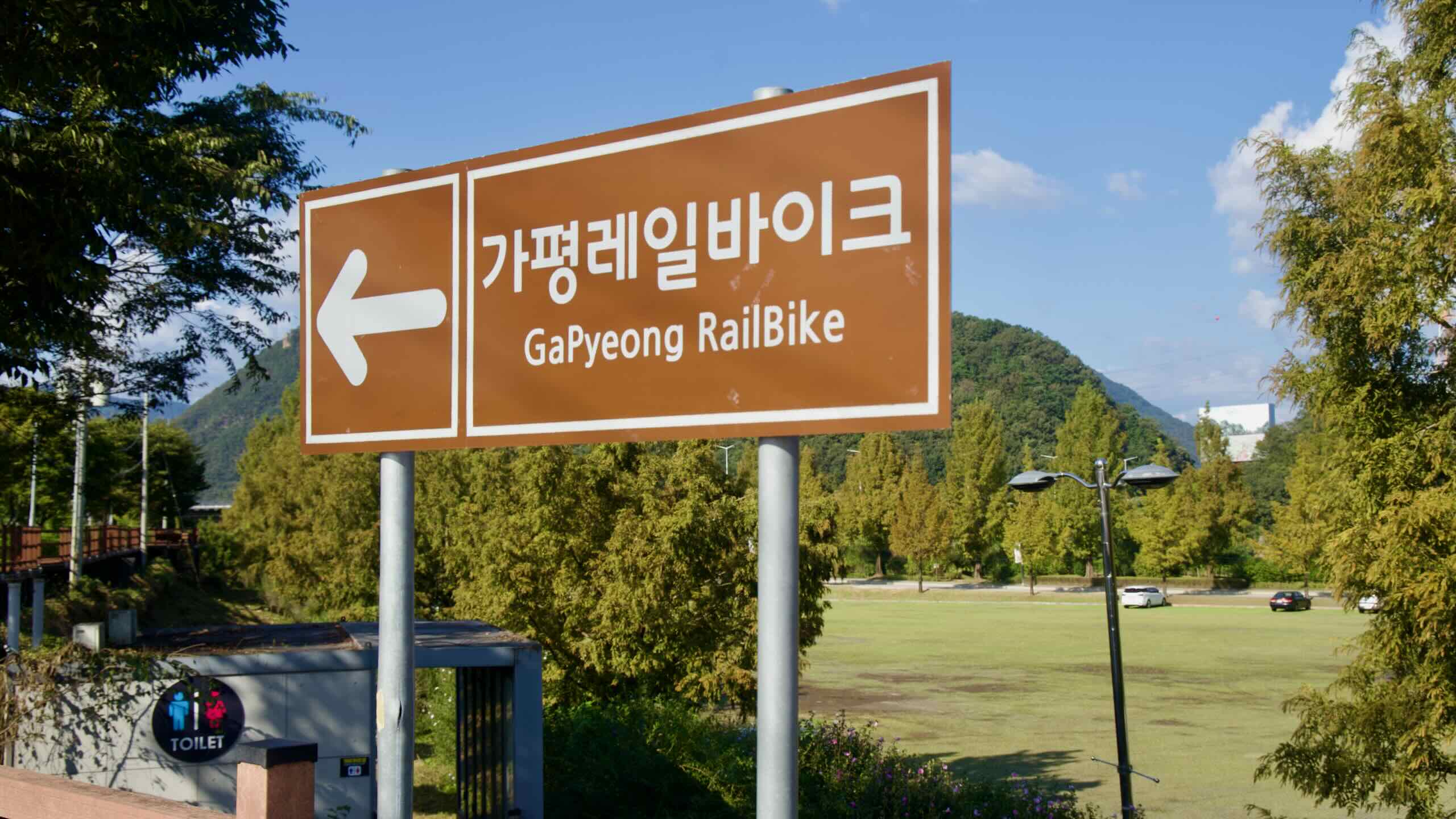 Gangchon Rail Park (강촌레일파크; map), located in Chuncheon City (춘천시; map), is a pedal powered rail bike that travels along the decommissioned Gyeongchun Line, providing scenic views of the North Han River and surrounding landscapes.