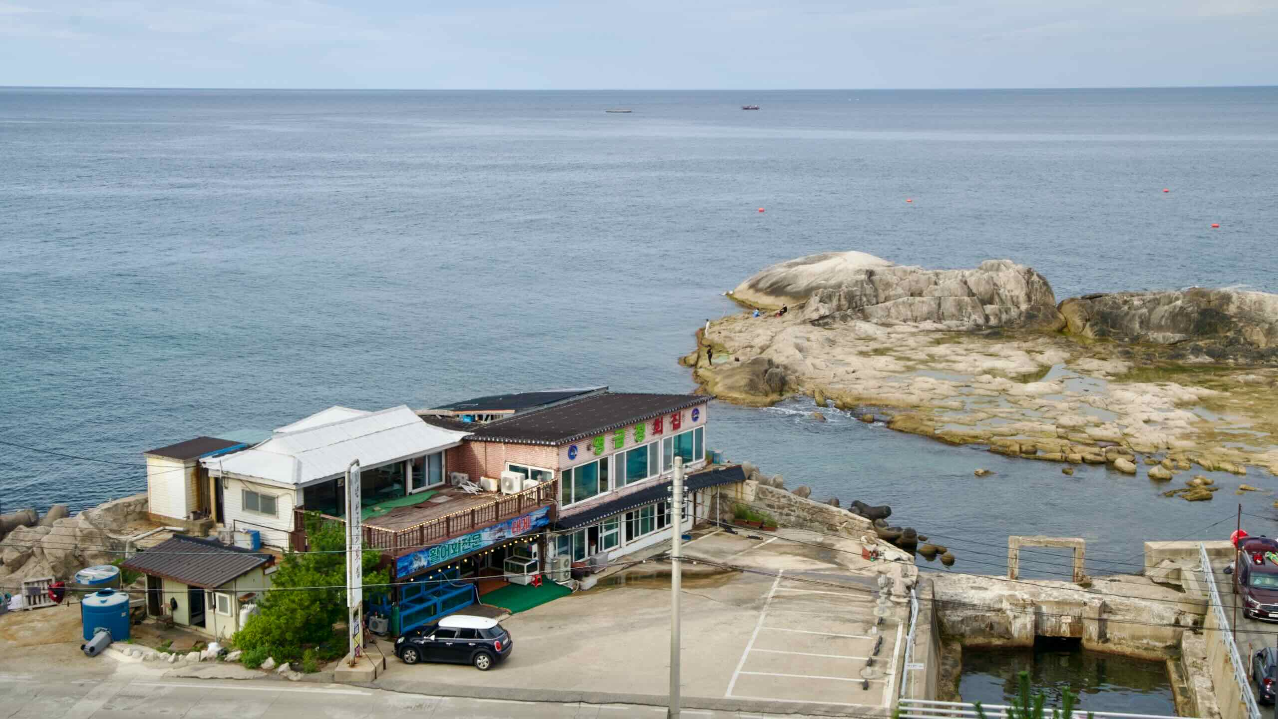 During Japan’s occupation of Korea (1910 ~ 1945), the Japanese destroyed the Yeonggeum outcrop and used its material to create Sokcho Port, leaving Yeonggeum as a wide, flat rocky platform hanging just above the sea.