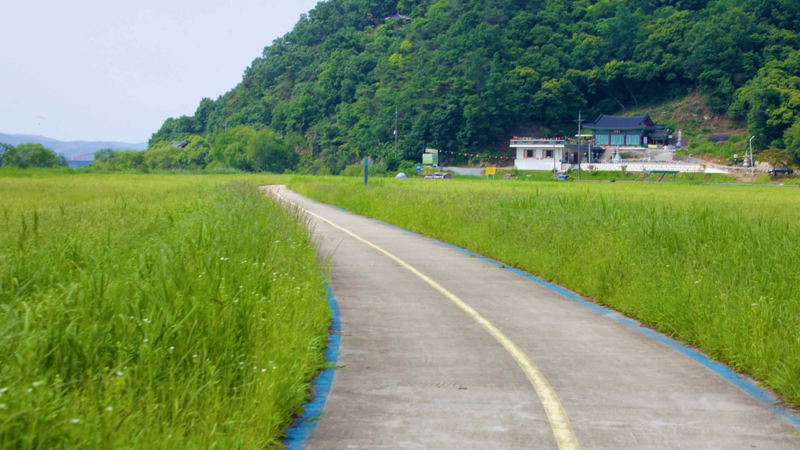 The course passes a historic theme park and a quaint port town fixed in time. The path’s end sits in a bird sanctuary near where the muddy mouth of the Geum River spills into the sea.