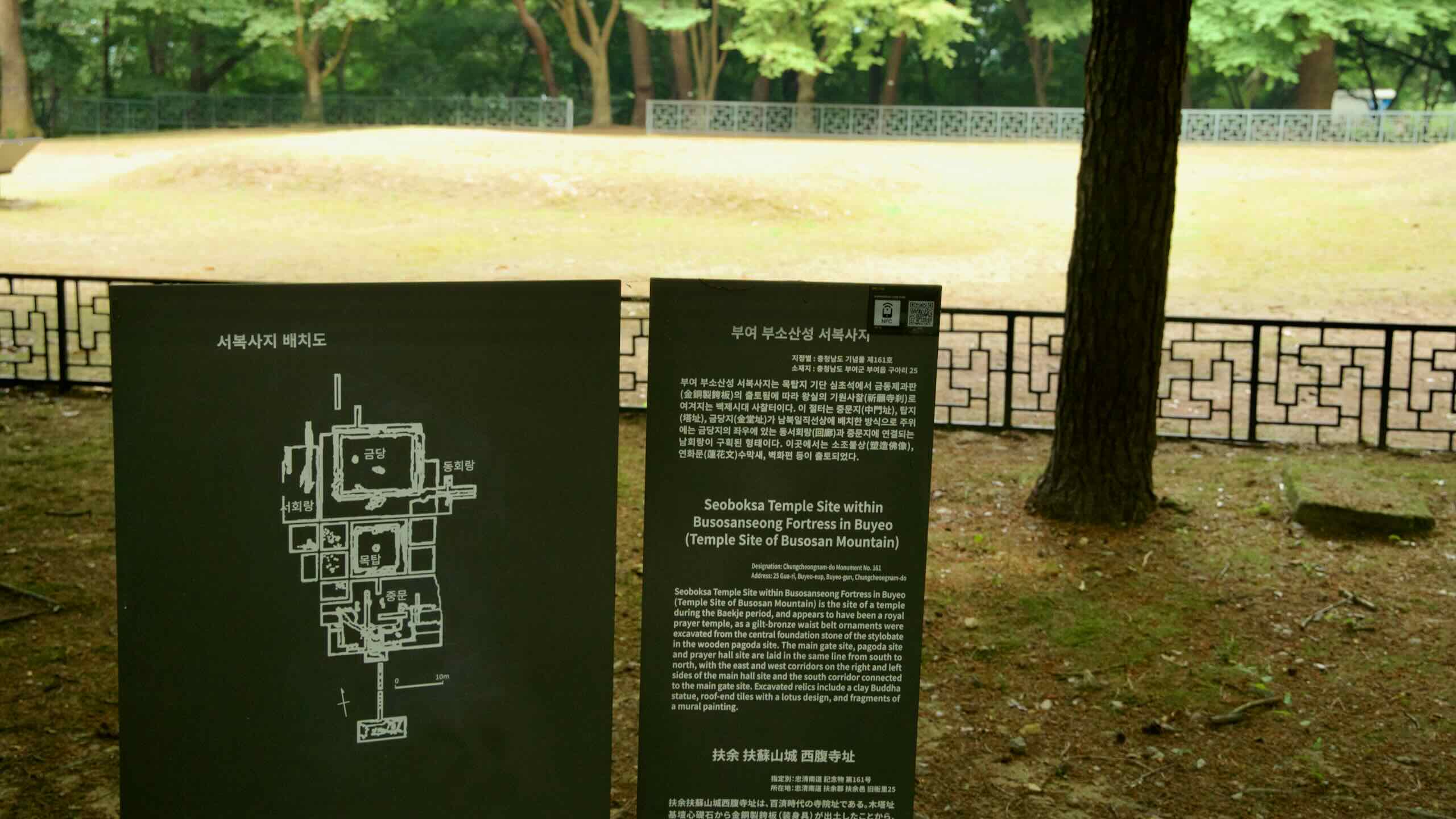 - The Western Temple Site (서복사지) features a classic Baekje temple layout with a central pagoda and main hall. Artifacts such as gold ornaments and ceramic roof tiles suggest a connection to high-ranking figures, possibly serving as a royal or court-specific religious site.